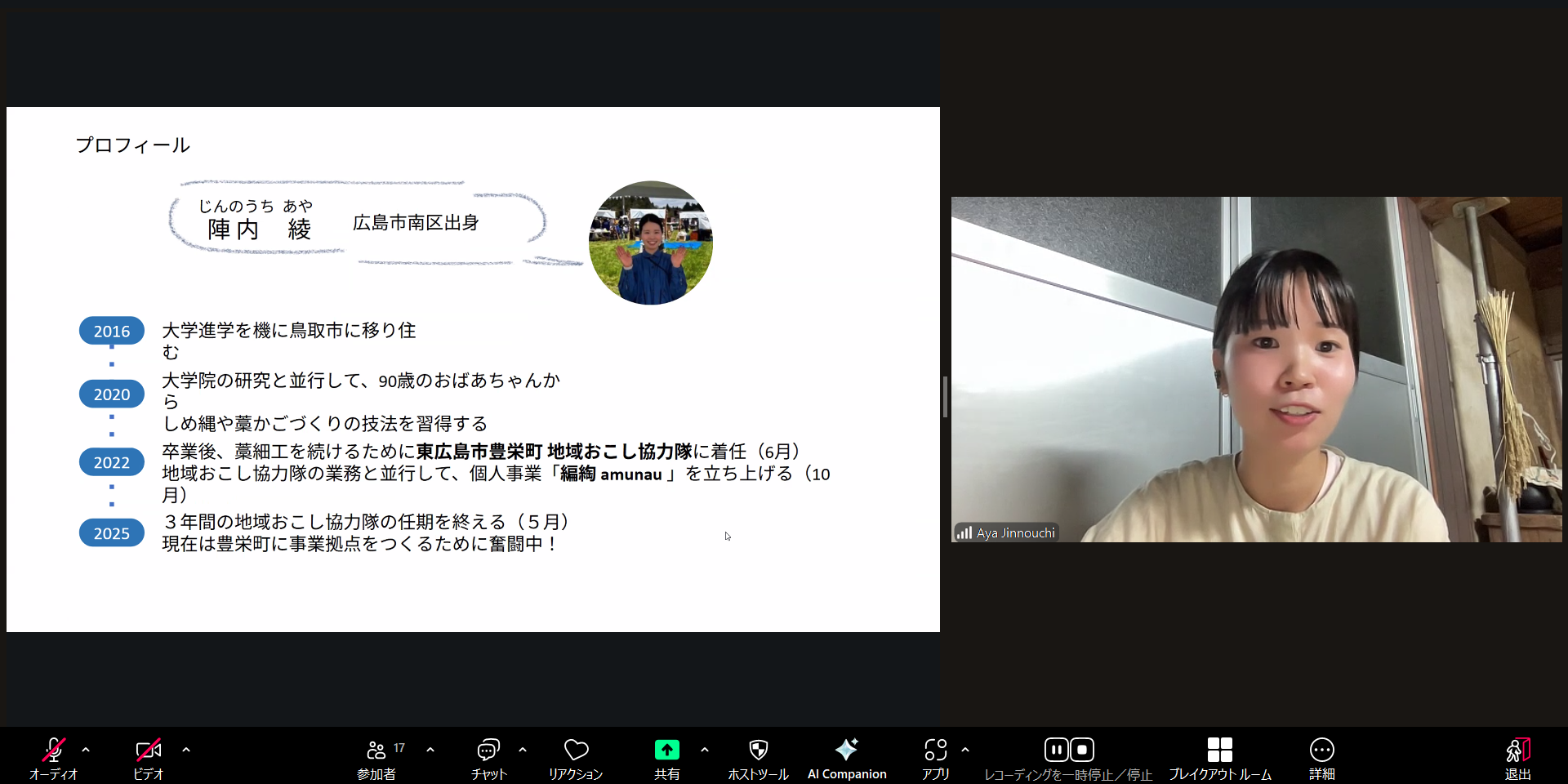 今回のオンライン交流会では、陣内さんの発表を通じて、地域の伝統を記録しながら継承し、それを軸に生業を築いていく姿が紹介されました。豊栄町で始まった活動が、呉市など他地域へと広がり、文化を“つなぐ人”を増やしていくプロセスこそ、地域づくりの本質を体現していると感じました。