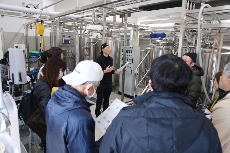 再び町を歩き、クラフトビール醸造所「江田島ワークス」へ。ここでは製造工程の説明とともに、工場見学を実施しました。
