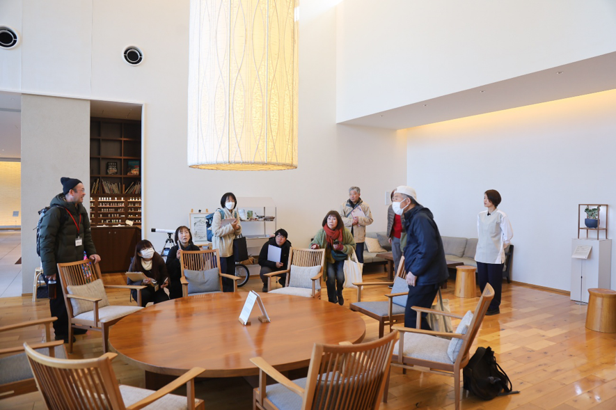 続いて、世界的な建築・空間デザイン賞で3冠を達成した「江田島荘」へ。今回は特別に、普段はなかなか見られない客室なども見学させていただきました。