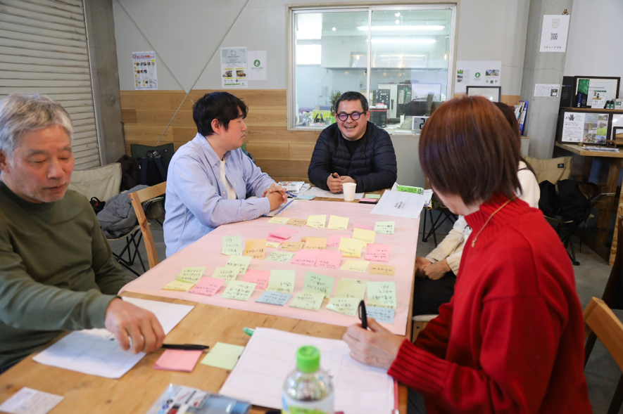 単なる見学で終わらせず、ツアーを通じて感じた江田島の「魅力」や「課題」を参加者同士で率直にシェアしました。その後、それぞれの気づきをもとにアイデア出しを行い、具体的な地域づくりのプランへとまとめていきました。