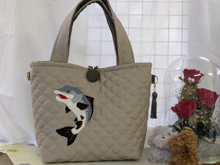 オリジナルアップリケを装飾したランチトートを販売しています