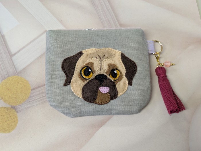 オリジナルアップリケを装飾したぺったんこポーチになります。
